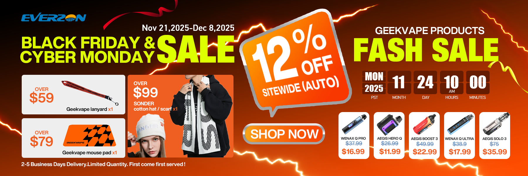 Geekvape Black Friday Flash Sale at Everzon! Limited stock, random color. Starts 2025/11/24 10AM PST. No returns. Final sale. Grab your deal now!