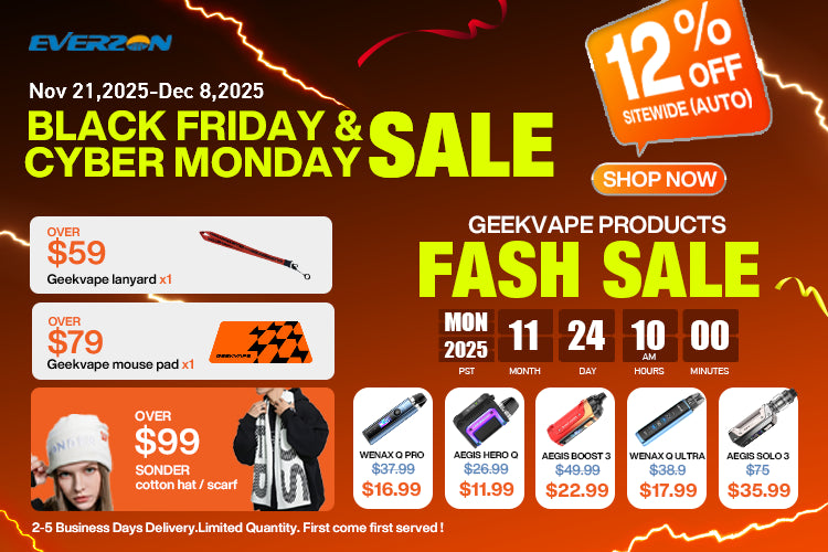 Geekvape Black Friday Flash Sale at Everzon! Limited stock, random color. Starts 2025/11/24 10AM PST. No returns. Final sale. Grab your deal now!